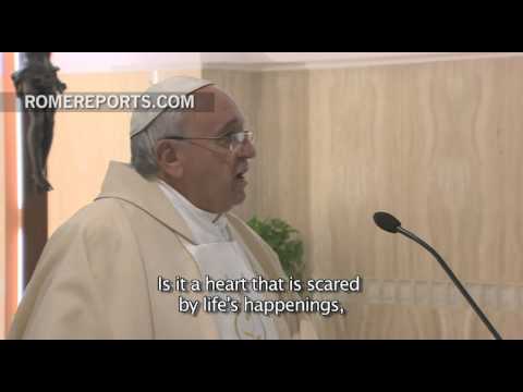 "With this example, we can ask ourselves today: What kind of heart do we have? Is it a fickle heart which like a dancer, like a butterfly flits from one to another…always in motion; Is it a heart that is scared by the vicissitudes of life, and is hiding and afraid to give witness to Jesus Christ; is it a brave heart or a heart that has so much fear and is always trying to hide? What does our heart care for? What treasure does our heart custody? Is my heart fixed upon creatures, the problems that we all have ? Is my heart fixed upon everyday gods or is it a heart fixed on the Holy Spirit? ".
